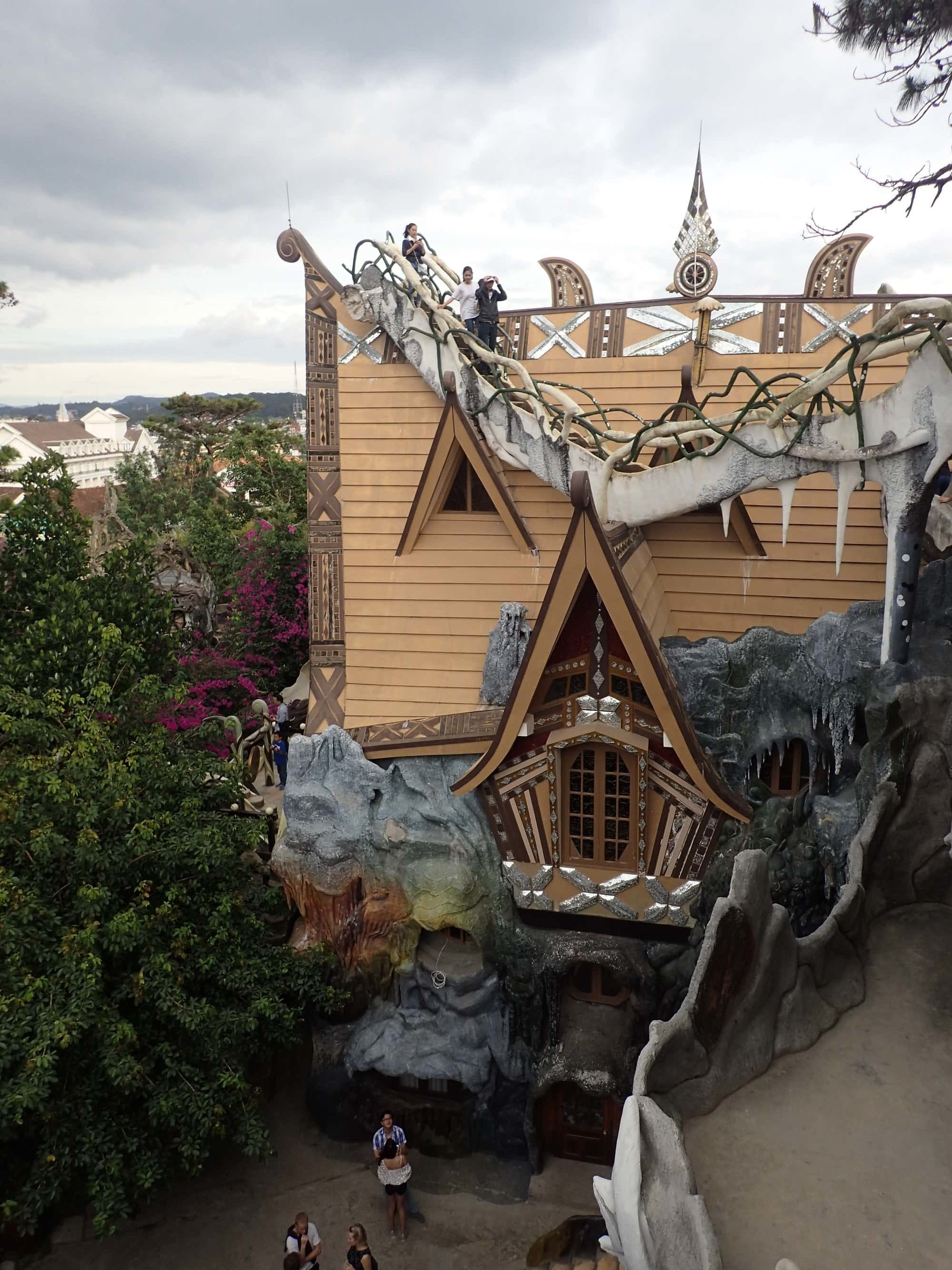 Es war erst Mittag und wir entschlossen, mit dem Taxi in die Stadt dazu fahren. Unser Ziel: das verrückte Haus. Doch plötzlich hatten wir alle Hunger und wir sahen wie im Restaurant direkt gegenüber lecker aussehende Gerichte serviert wurden. So bestellten wir anschließend genau das Essen vom Nachbartisch. Die Kellner und der Koch waren ziemlich beschäftigt, sodass wir ganze 2 Stunden hier verbrachten. Später erforschten wir endlich (und gemeinsam mit tausenden Chinesen) das „verrückte Haus“. Das war eine Mischung aus Salvador Dalis Stil und dem Baukünsten von Hundertwasser.