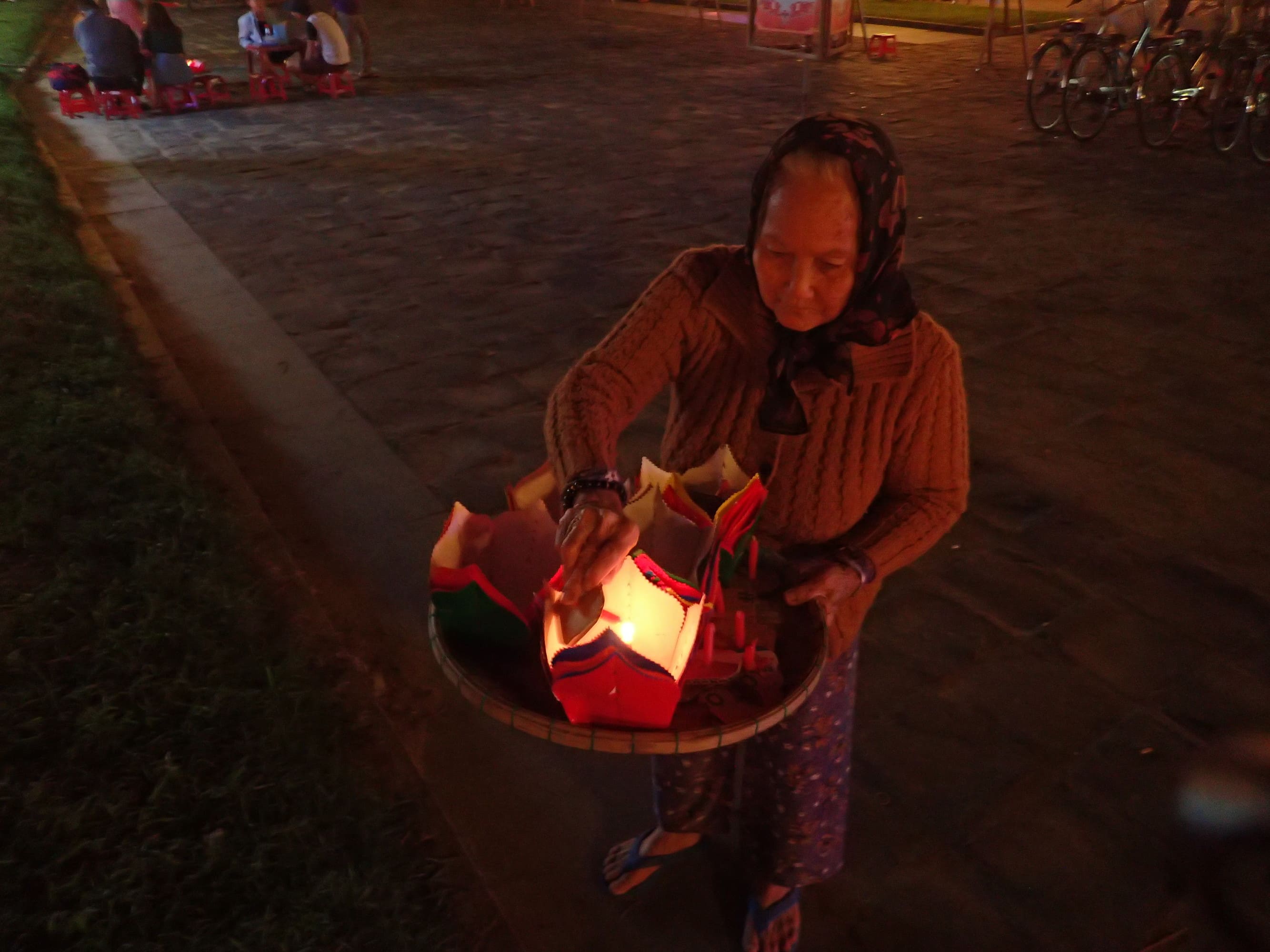 An einer großen Bühne warteten wir auf das Entertainment-Programm, welches einer Schlagerparty mit extra viel Schmalz ziemlich nahe kam. Vor uns saß eine Gruppe junger Leute mit denen wir gleich Gesprächsstoff fanden. Einer kam aus Deutschland. Dann Countdown mit großem TamTam und Minifeuerwerk, welches wegen den starken Überschwemmungen eigentlich ganz ausfallen sollte und dann – war alles zu Ende. Alle wollten so schnell wie möglich nach Hause kommen, um einem besonderen Ritual zu folgen. In diversen Blecheimern und Töpfen wurden Geld und alte Lasten in Form von buntem Papier und natürlich echten Scheinen verbrannt. Alle Schulden mussten vor dem Neujahr beglichen werden, um einen sauberen „Start“ zu gewährleisten. Es gibt jede Menge Regeln und Aberglauben, die bei diesem Fest beachtet werden sollten und das mindestens 3 Tage lang. Es war eine absolut romantische und feierliche Stimmung mit dem Fahrrad in der Nacht um halb zwei an den brennenden Trögen und betenden Leuten vorbei zu fahren. Es schien für jeden eine persönliche Angelegenheit zu sein. Hier und da erschallte ein „Happy New Year!!“ zu uns herüber.