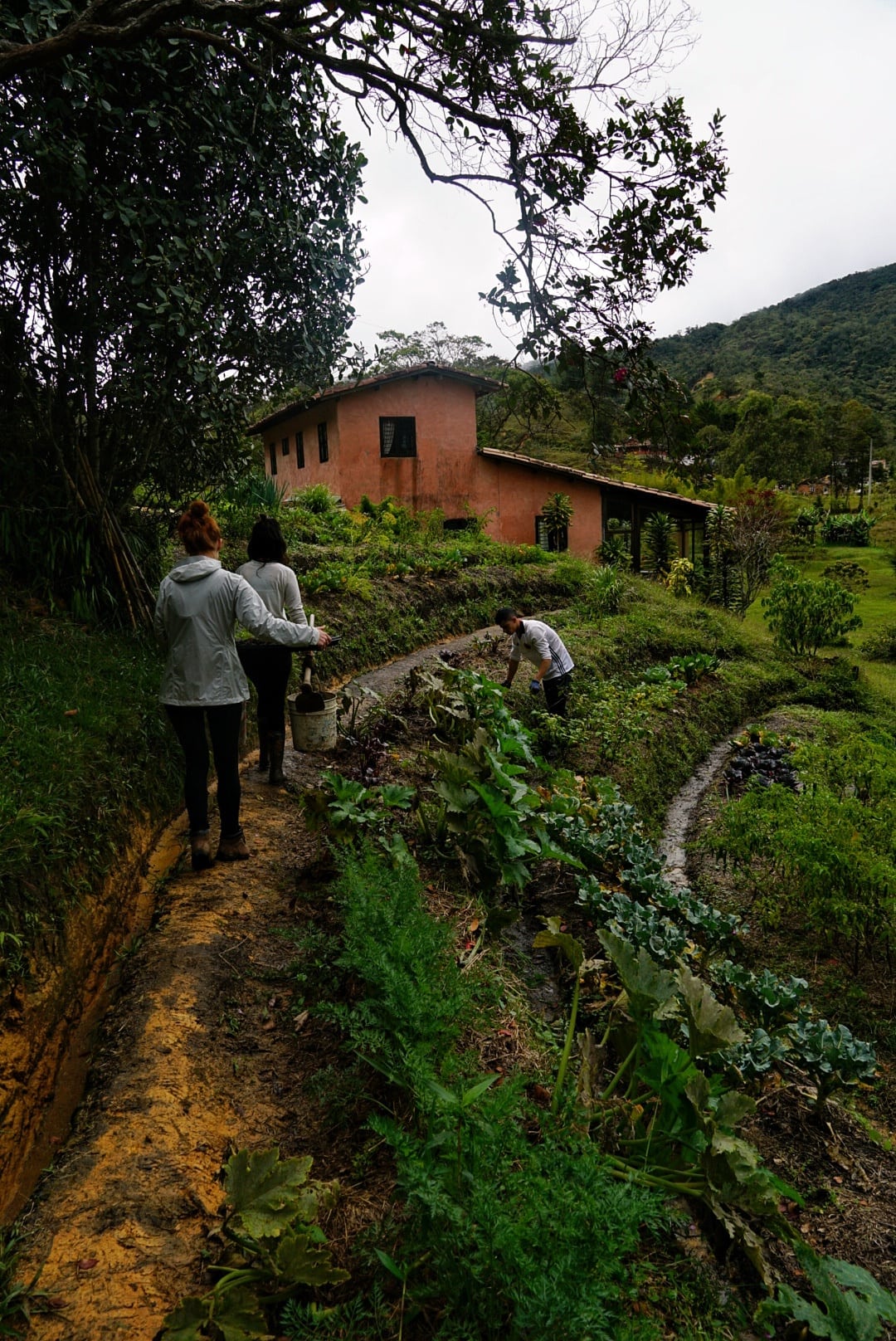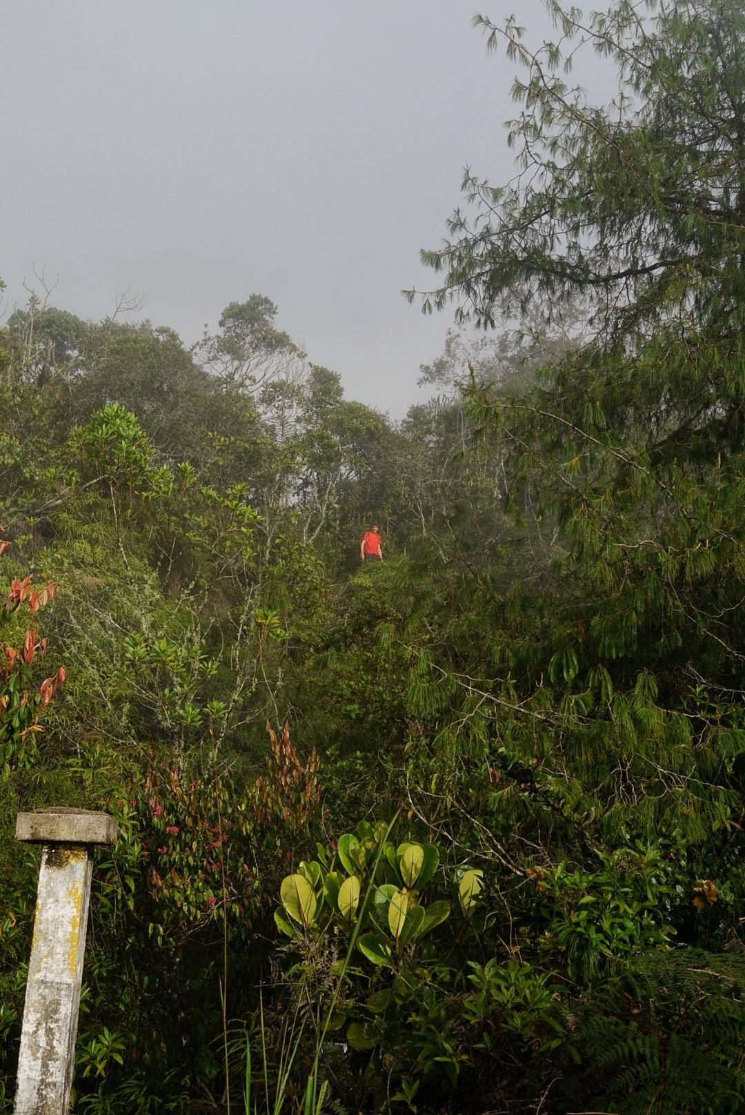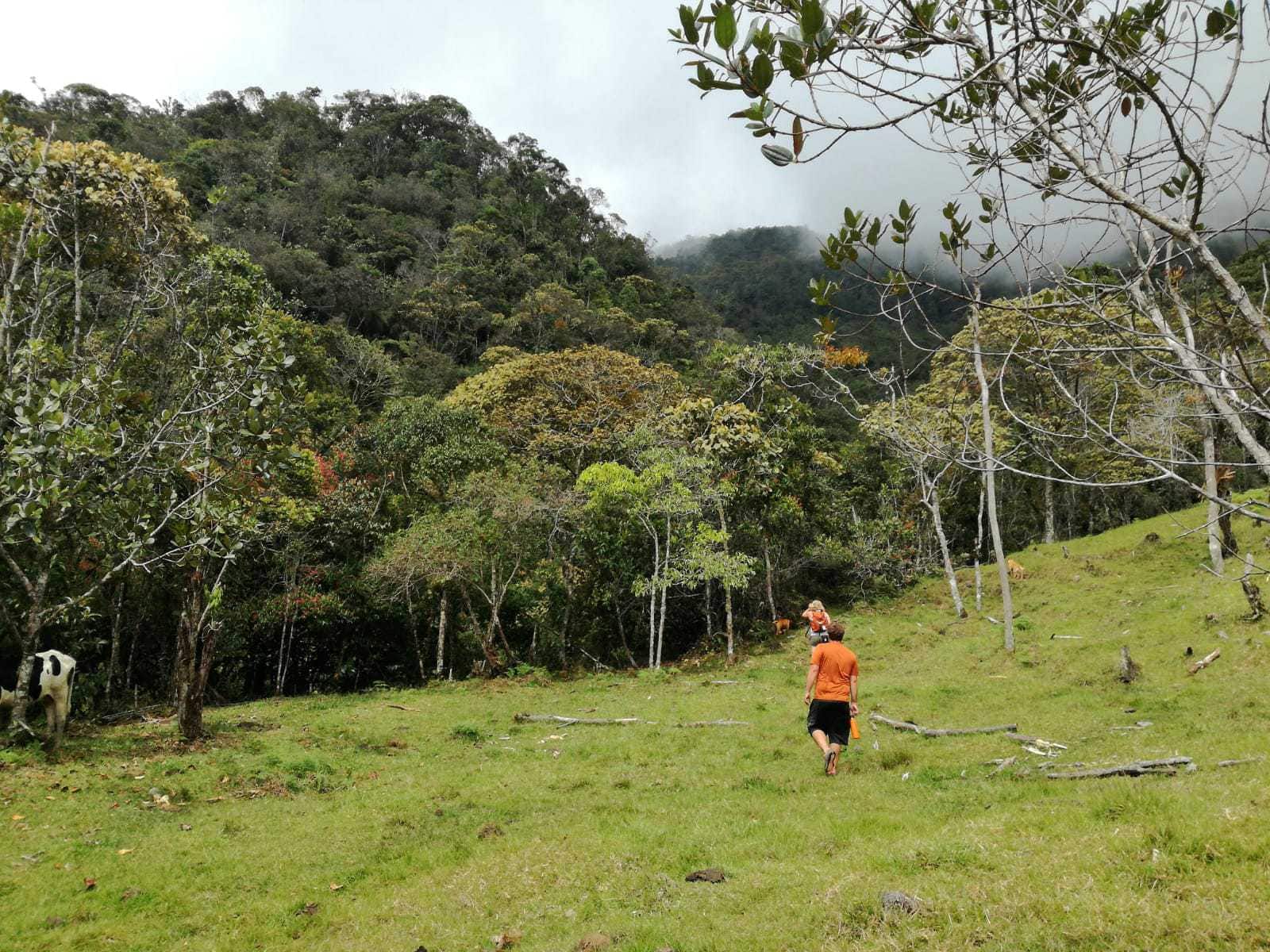 Allerdings fand ich die Tour in die Berge spektakulärer. Vielleicht weil es auf noch schmaleren Pfaden bergauf ging oder weil in Gipfelnähe ständig Wolken sind und somit eine Luftfeuchtigkeit herrschte, wie man sie sich eben im Dschungel vorstellt. Genauso war auch die Vegetation. Wir krochen gebückt unter Wurzeln hindurch, um in der nächsten Kurve wieder im Blätterwald zu verschwinden. Dieser Pfad wurde im 18. Jahrhundert bereits vom Militär genutzt und später von der Guerilla. Ich fühlte mich ein bisschen wie im Film. Da der eigentliche Rückweg zugewachsen war, folgten wir einem anderen Weg, der auf dem Kamm der Berge entlang führte. Bis plötzlich aus dem Nebel ein Soldat auftauchte. Was wir hier wollen? Ja eigentlich raus aus dem Dschungel, zurück ins Quartier. Okay, aber keine Fotos machen. Wir waren an der Militärstation angekommen, die wir von unserer Farm in lichten Momenten erspähen konnten. Wir durften das Gelände passieren und mussten uns nun aber sputen – in einer dreiviertel Stunde wird das Licht ausgeknipst und wir mussten noch einen steilen matschigen Bergpfad hinab.