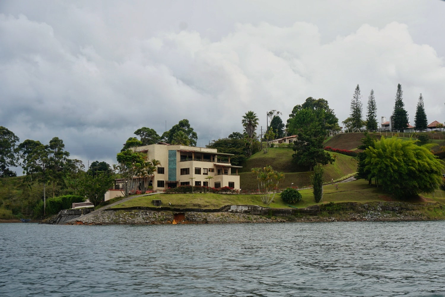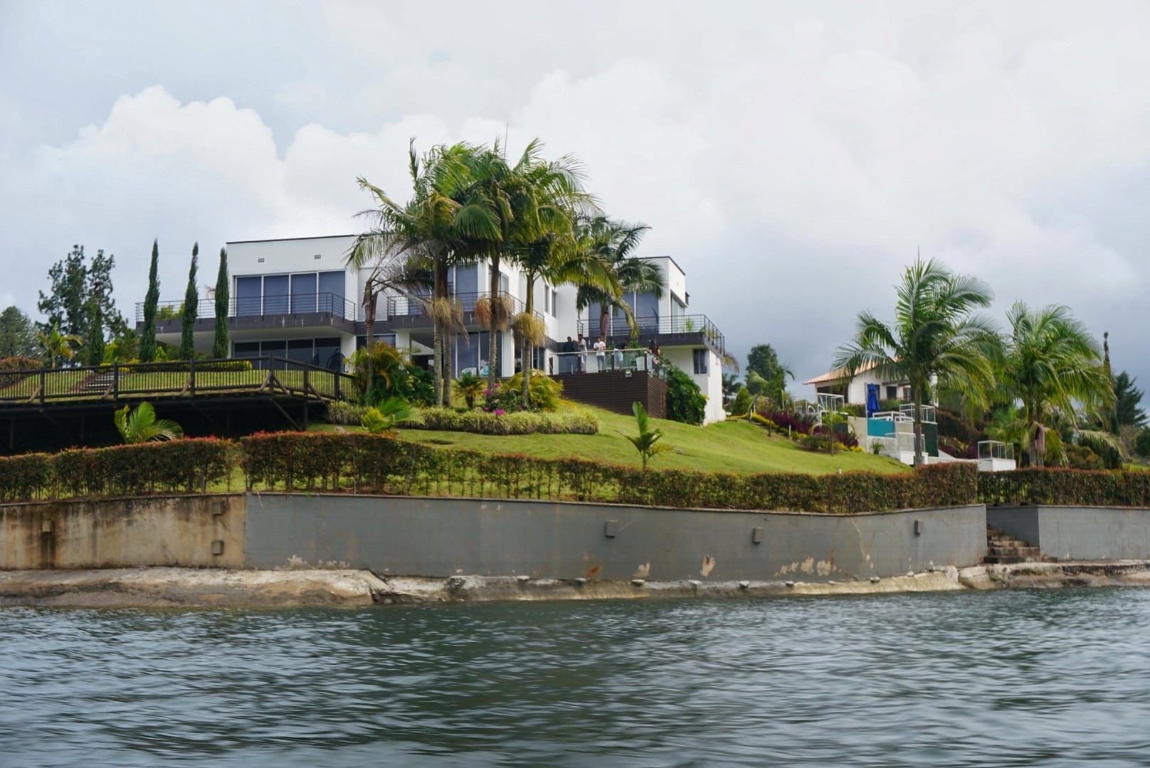 Zu guter Letzt möchte ich noch von unserem Bootsausflug berichten. Auf dem Stausee, der hauptsächlich zur Energiegewinnung erbaut wurde, kann man mit einem Boot zu einer Museumsinsel fahren. Dort wird über die versenkten Dörfer berichtet. Unterwegs kommt man an Inseln mit luxuriösen Villen vorbei, die u.a. James Rodriguez und anderen VIPs gehören. Man sieht auch die Ruinen des Anwesens vom ehemaligen Drogenbaron Pablo Escobar, welches von seinen Konkurrenten bombardiert und somit zerstört wurde. Einheimische haben hier kein Verständnis für die Glorifizierung des Verbrechers, der tausende Menschen durch Auftragsmörder auf dem Gewissen hat. Wir waren mit unserer gesamten Spanisch-Lerngruppe unterwegs. Als wir auf die Insel kamen, waren wir allein und gingen schon hinein. Etwas später kam auch ein Guide, der begann, über die Dörfer zu berichten. Kurz darauf kam ein älterer Mann zu uns und winkte unseren Übersetzer zu sich. Mit entgeistertem Gesicht kam er zurück. Was ist los? Wir wurden beschuldigt umgerechnet über 100 US $ aus einem Raum gestohlen zu haben. Ja, wie soll man das Gegenteil beweisen? Ich dachte zunächst, es sei eine Masche. Wenn jeder von uns 10 US $ dazu gäbe, kämen die auch auf ihr Geld. Aber die Situation war ziemlich ernst. Ich sollte meine Tasche zeigen, weil ich auch zuerst die Räumlichkeiten betreten hatte. Dummerweise hatte ich so viel Geld einstecken, aber wie will man beweisen, dass das mein und nicht deren Geld ist. Dass die Zeit gar nicht ausreichte, um in ein Zimmer zu gehen und das Geld wegzunehmen, schien dort niemanden zu interessieren. Was passiert jetzt? Wir hatten keine Ambitionen mehr die Museumstour fortzusetzen und wollten auf das Boot zurück. Es dauerte noch gefühlte Ewigkeiten und zig Anrufe bis unser Bootsführer und unser Übersetzer zurückkamen, bedröppelt mit den Schultern zuckten und uns wieder sicher an Land brachten.
